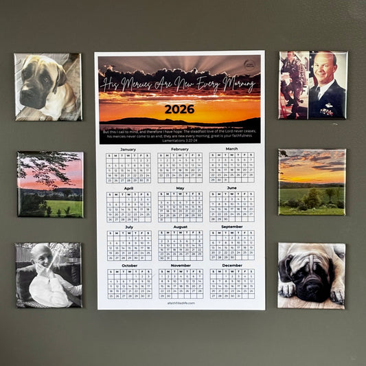 2026 magnetic half-sheet calendar with “His Mercies Are New Every Morning” and Lamentations 3:22–24. A daily reminder of God’s love—perfect for home or office.