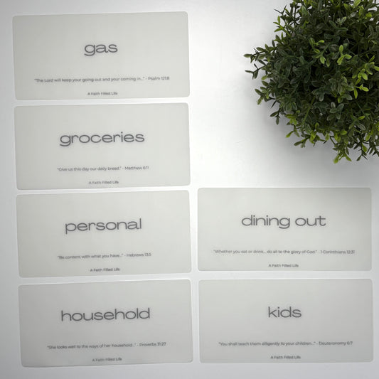 Our Vellum Cash Envelope Inserts are designed for cash stuffing and include an uplifting scripture on each insert to keep you encouraged as you budget. Slip them into your vinyl cash envelopes for a clean, organized system that makes every category easy to find.