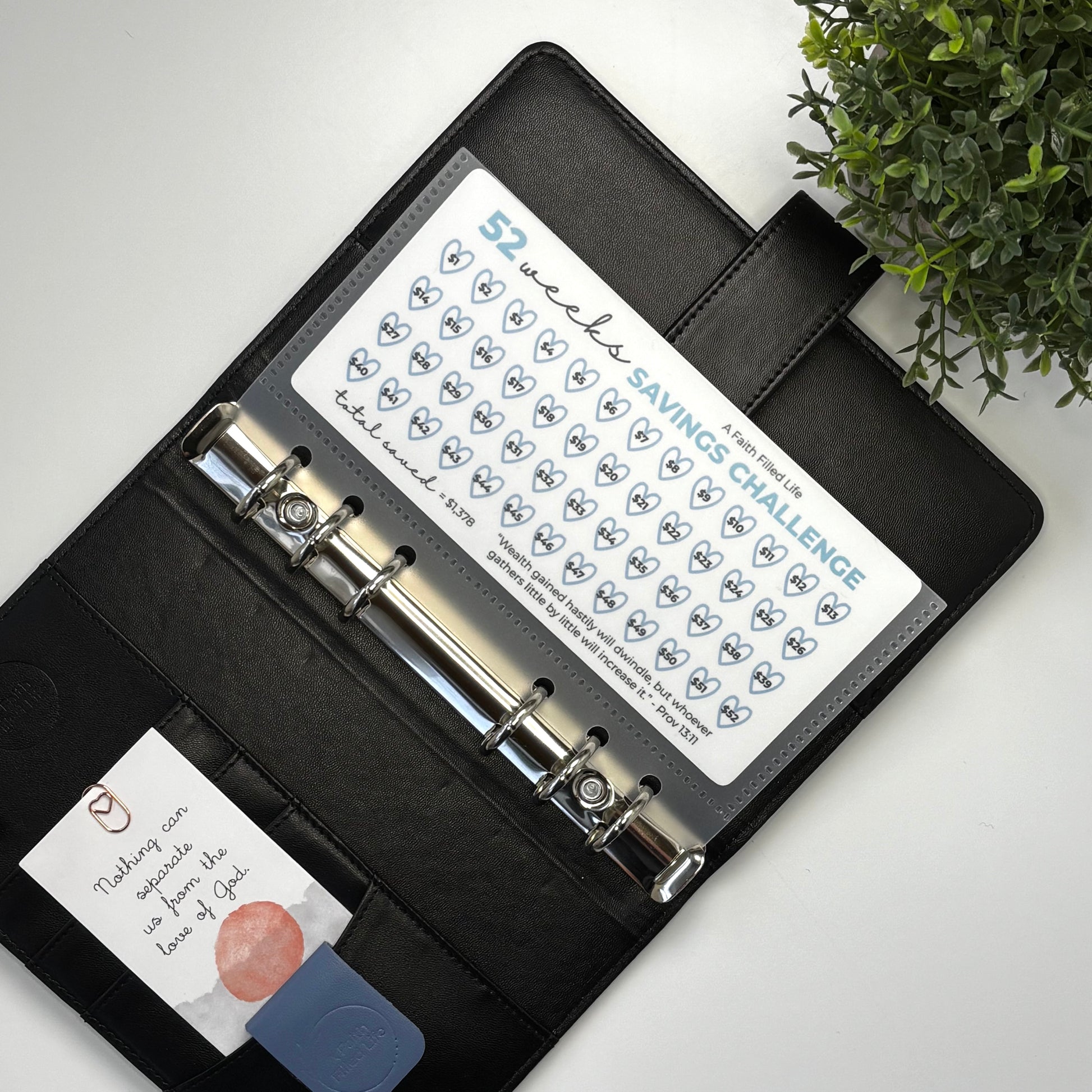 The Hope Collection Individual Savings Challenges are faith-filled, reusable trackers designed to help you save with purpose, one small step at a time. Each challenge features a different Scripture for encouragement, and is made to fit neatly inside your A6 Vinyl Cash Envelopes (sold separately) for easy cash stuffing.